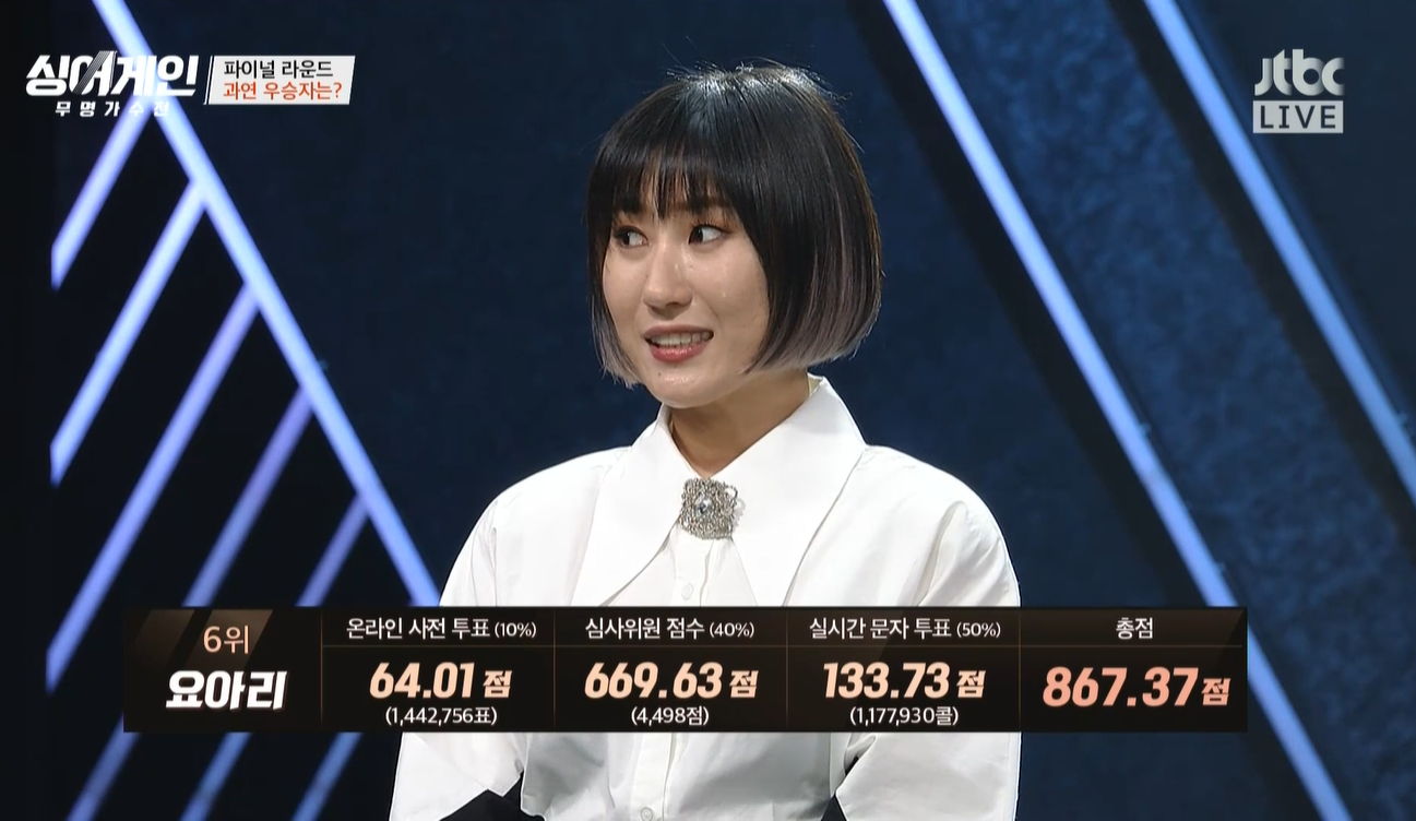 요아리는 신비로운 목소리와 함께 엄청난 가창력을 보여주었어요.