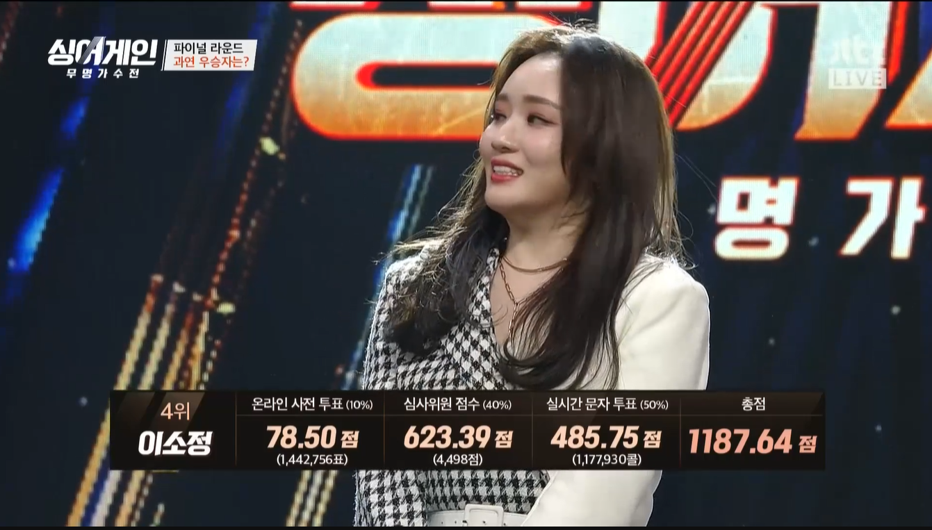 파워소울의 가창력을 보여준 이소정이 3번 이었습니다.