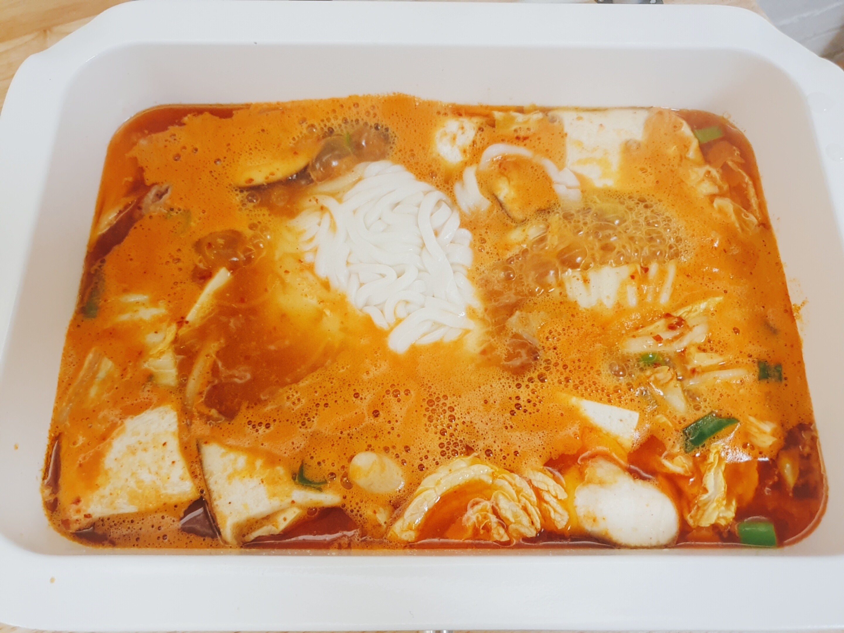 우동 사리를 넣고 2~3분만 더 끓여주면 끝.