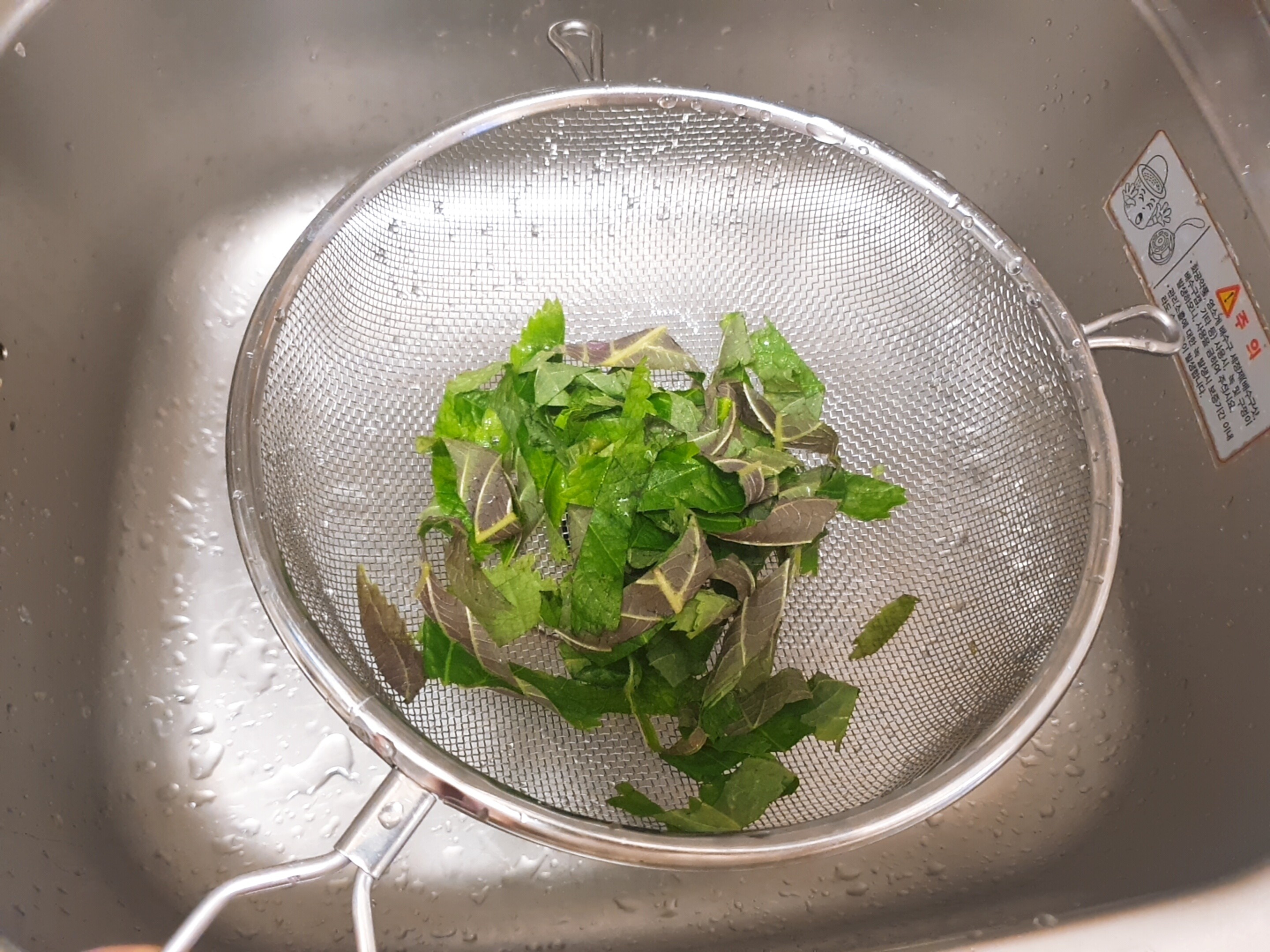 마지막에 깻잎만 곁들여주면 정말 먹을 준비 끝이에요.