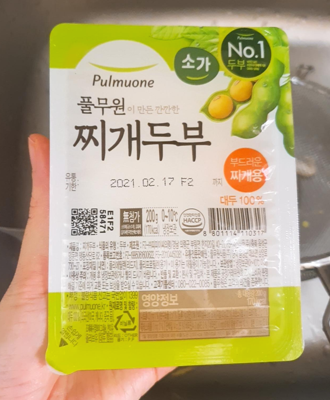 풀무원 찌개두부 작은 사이즈도 통으로 들어 있어요.