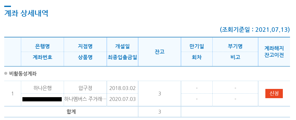 예를들어 저와 같은 경우에는 이렇게 있는지도 몰랐던 잔고가 3원인 통장도 발견했네요 ㅎㅎ