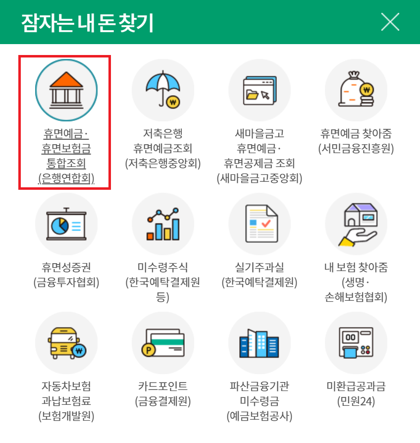 그러면 이렇게 다양한 종류의 잠자는 돈을 찾을 수 있는 메뉴들이 뜨는데요 ㅎㅎ