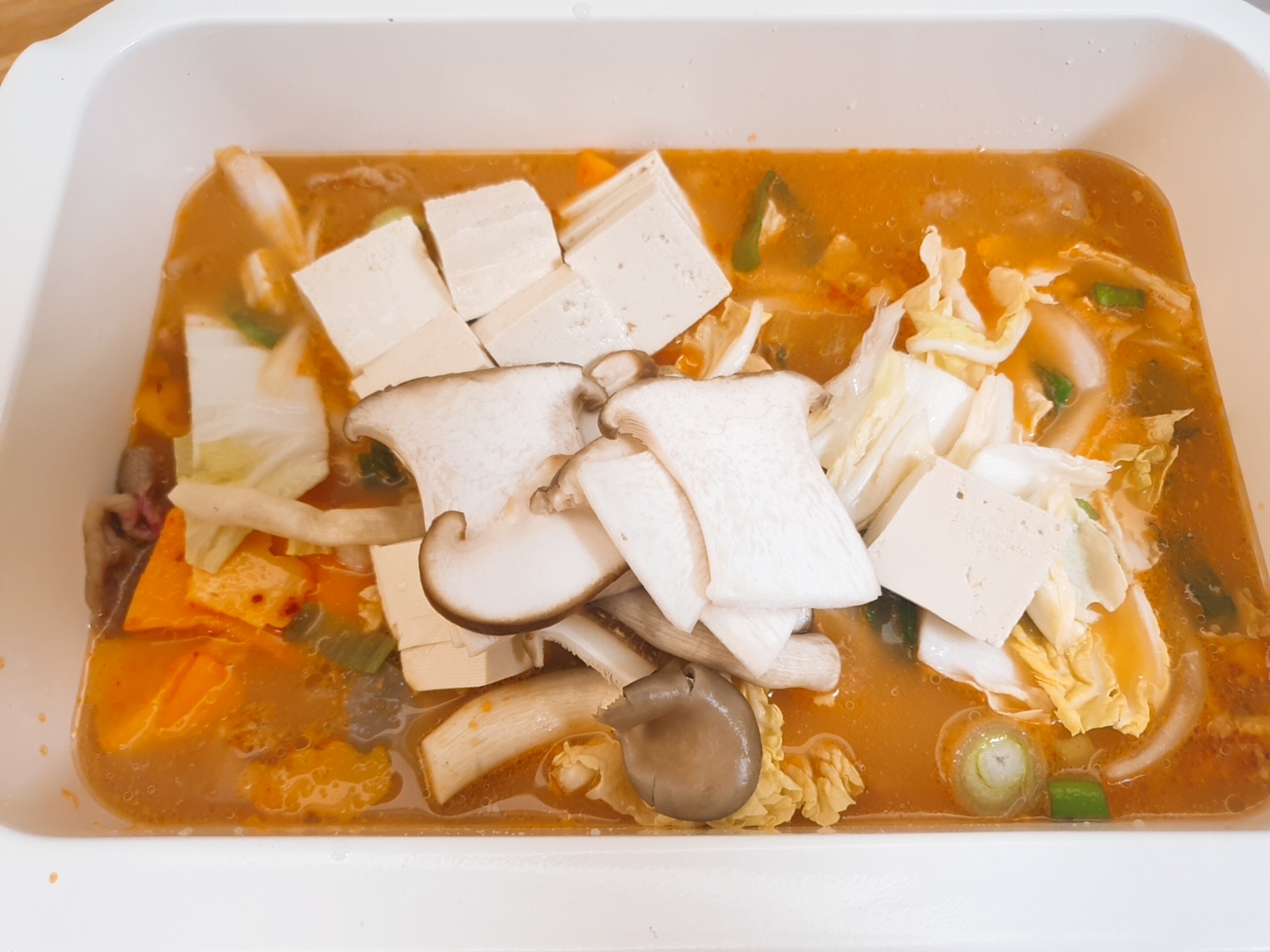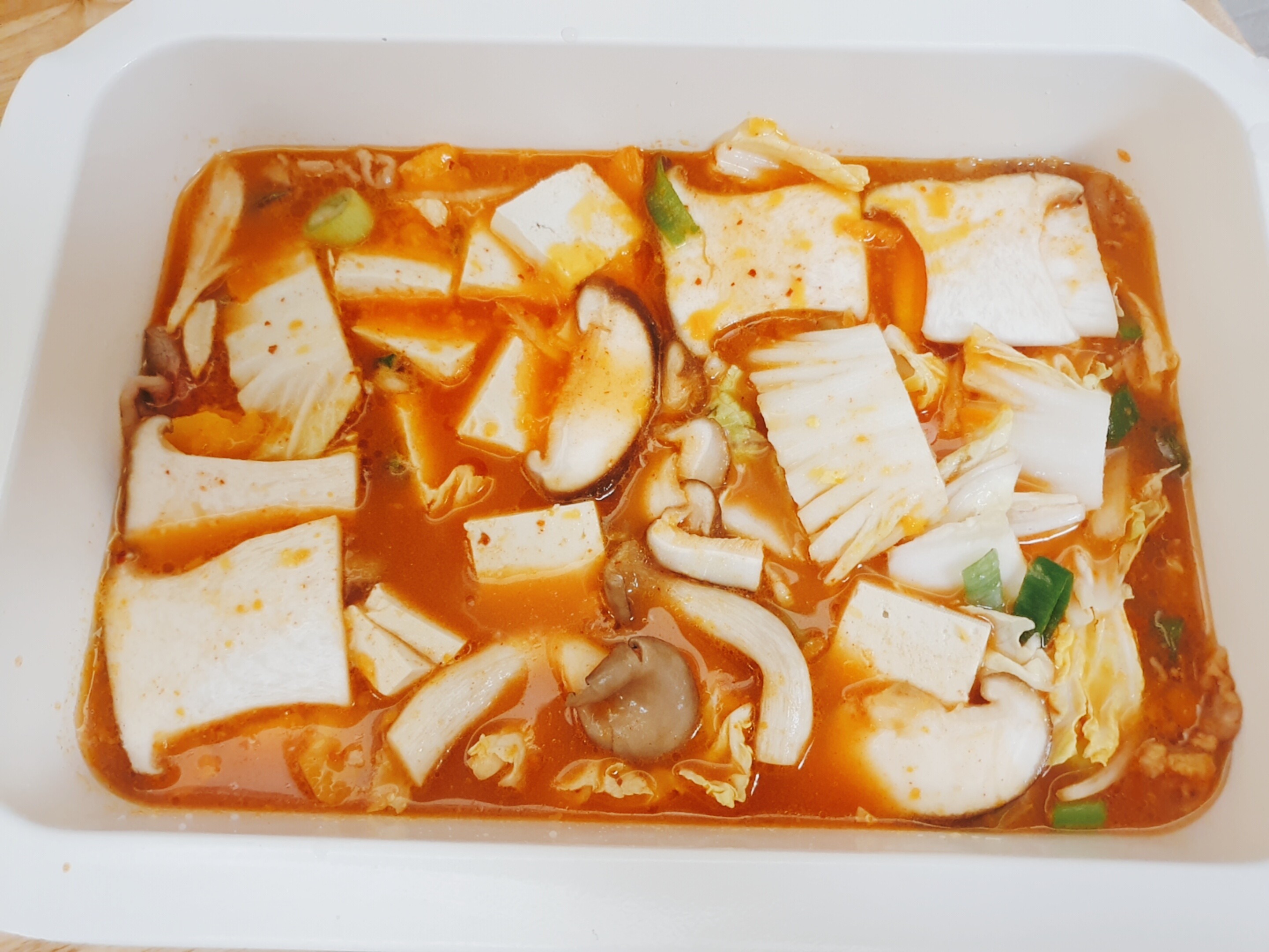 칼질이라고는 두부 써는 것 한번 뿐, 야채만 씻어서 다 때려 붓고 끓이면 끝인 아주 간편한 제품 입니다.