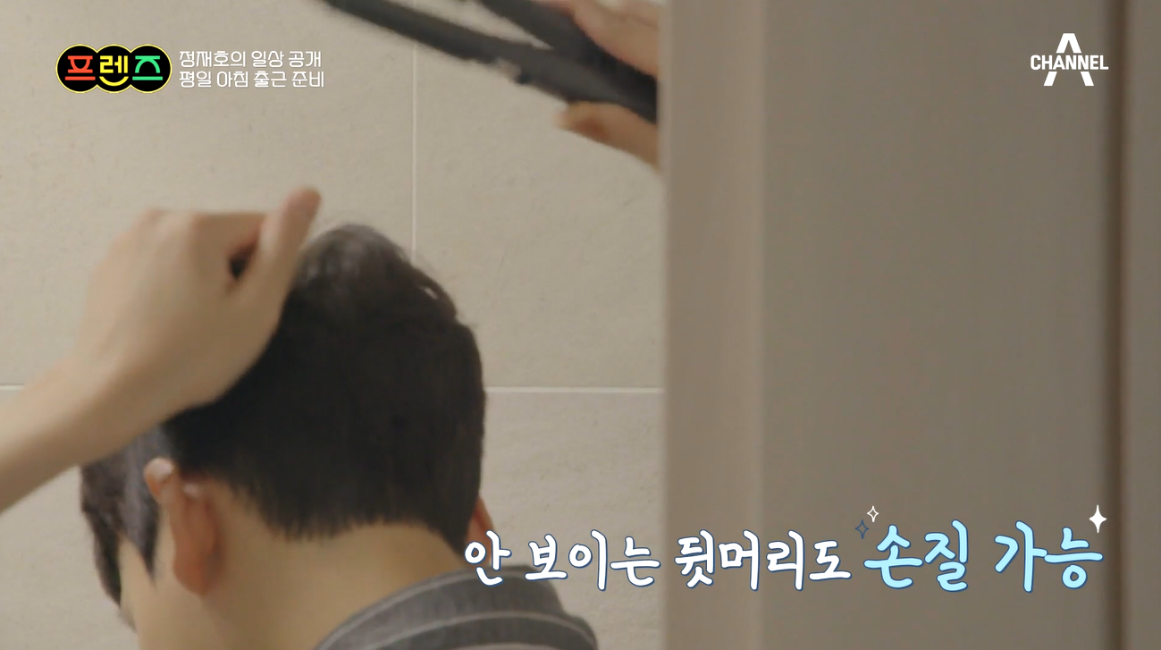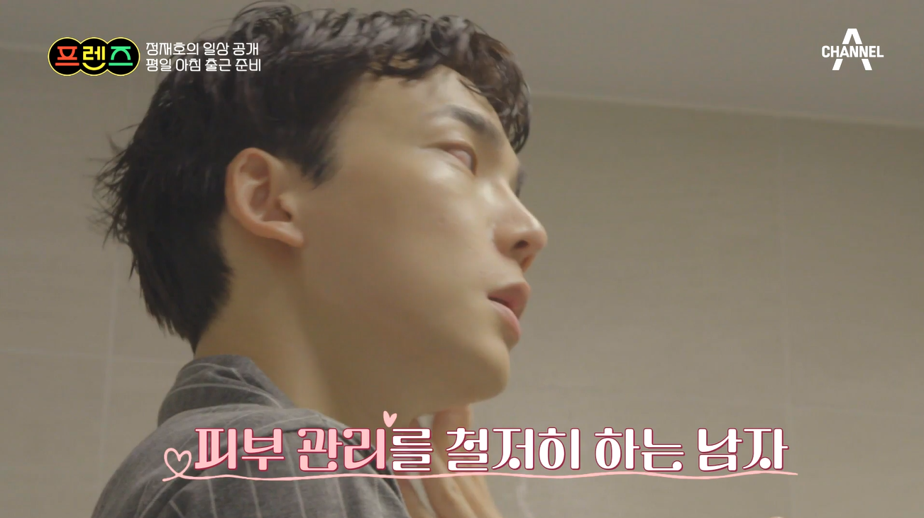 출근 준비를 하는 정재호의 모습은 피부 관리를 철저히 하는 모습 이었어요.