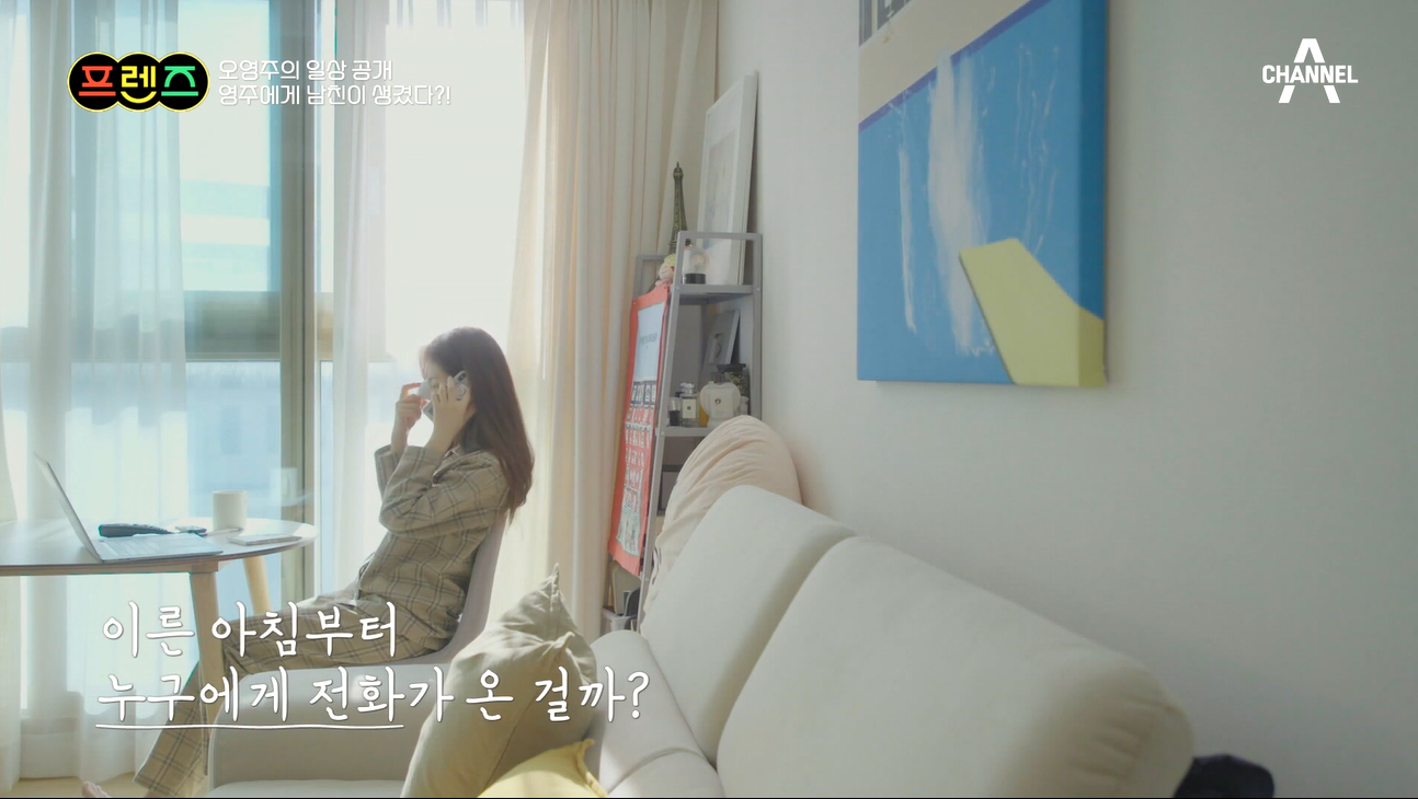 오영주는 아침 일찍부터 누군가와 다정하게 통화를 했는데요, 남자친구가 생긴 것인지 궁금증을 자아냈어요.