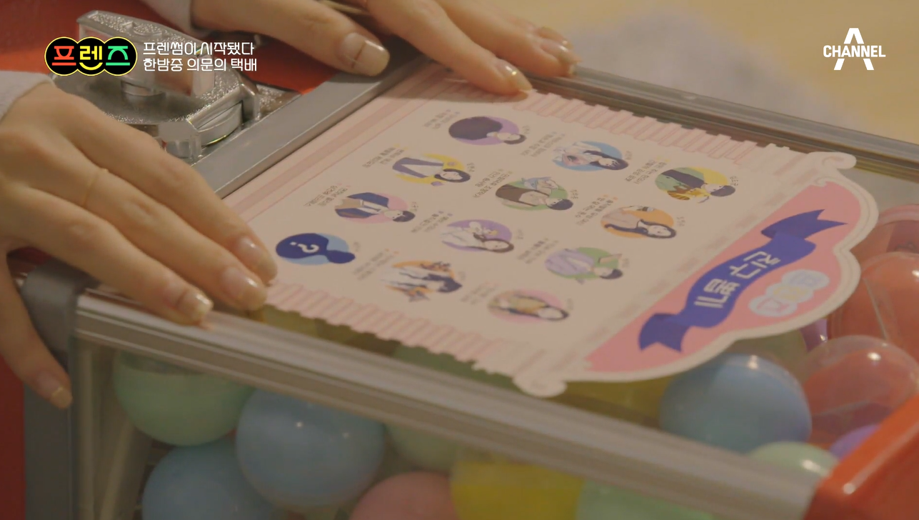항상 반복되는 일상을 살고 있는 이들에게 프렌즈가 즐거운 우연을 선물한다고 하는데요, 출연자들에게 뽑기 기계가 하나씩 배달 되었어요.