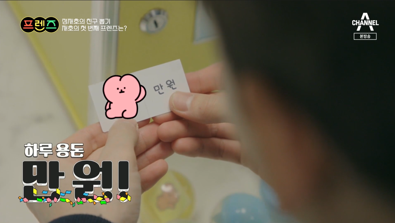 일말의 망설임도 없이 뽑기를 뽑아버린 이가흔은 뽑기를 확인하고 굉장히 당황했는데요, 프렌즈로 뽑은 것은 김현우, 용돈은 십만원 이었어요.